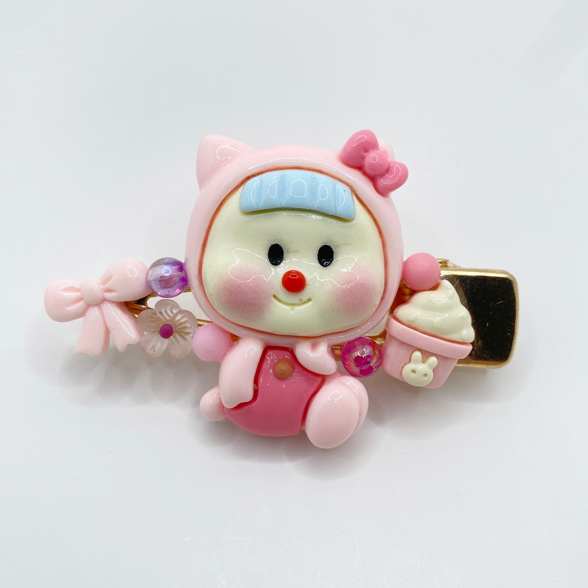 PinkDollie, Alligator Gold Clip with PVC Pink Dollie. Sundae, Ribbons and Popping Beads plus a mini Flower.