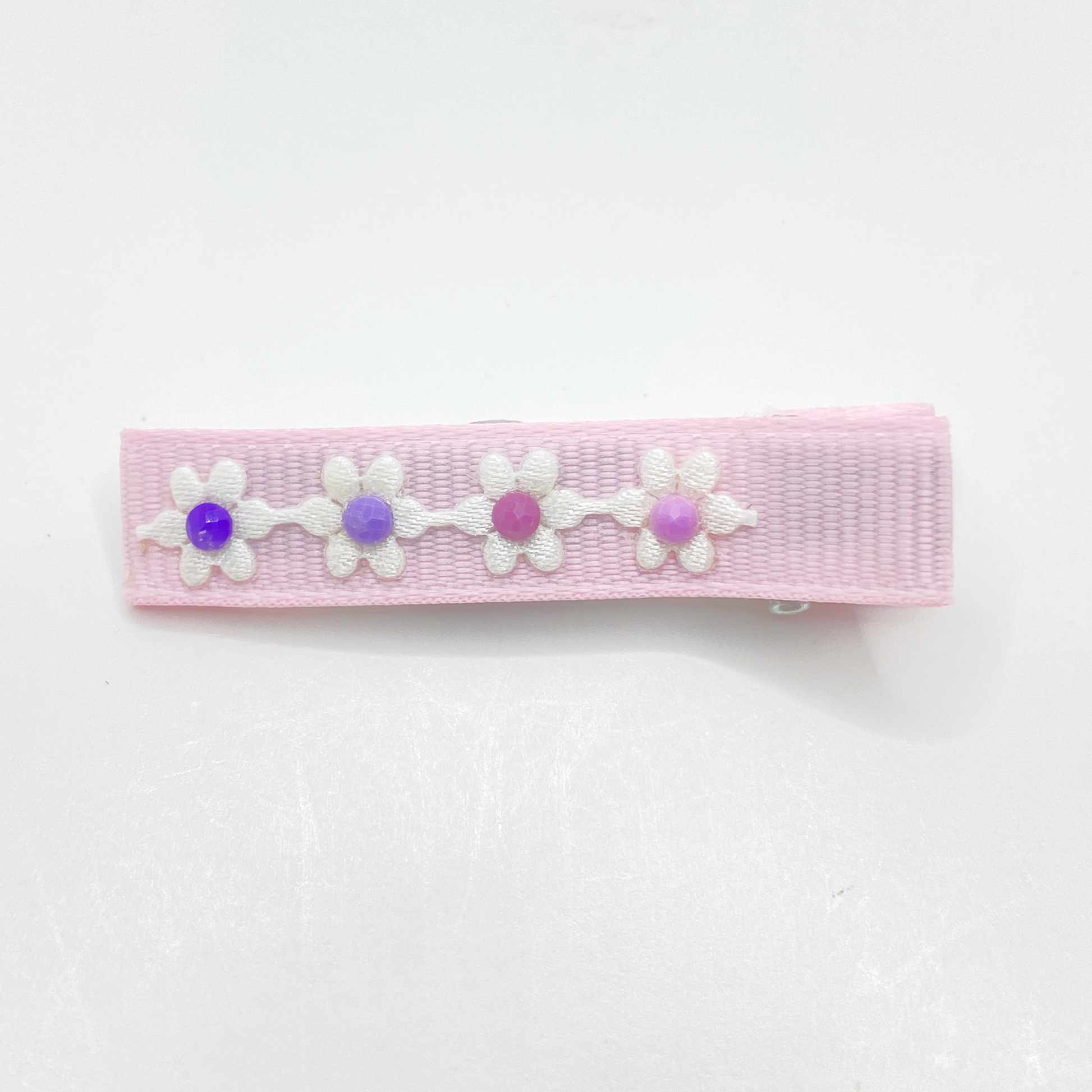 Flower, Alligator Pink Fabric Clip with 4 White Flowers and Purple Shades Sparkle Beads