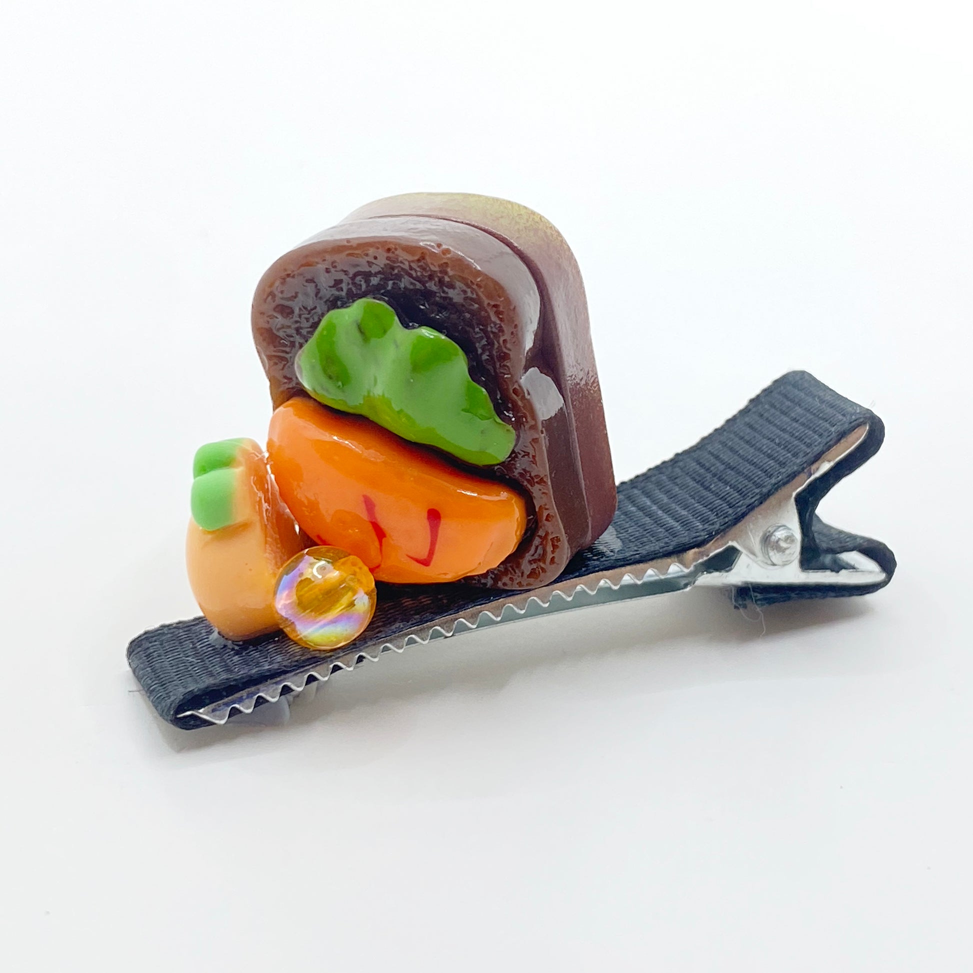 Toast, Alligator Silver Clip with Toast and Carrots, Orange Bead.